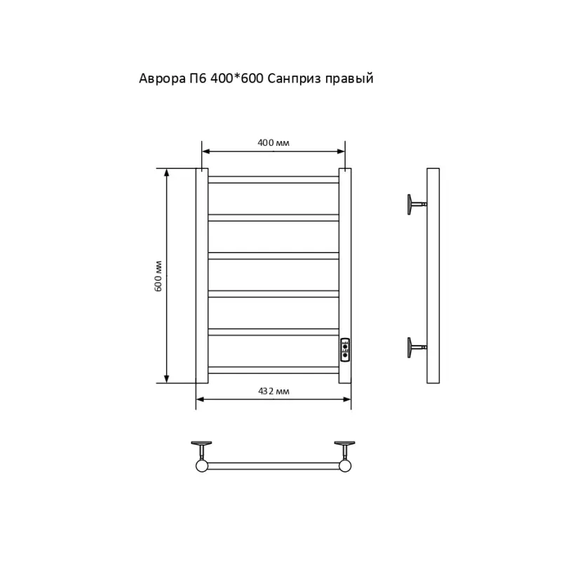 Полотенцесушитель электрический Санприз Аврора П6 400*600 11029 Хром глянцевый диммер справа
