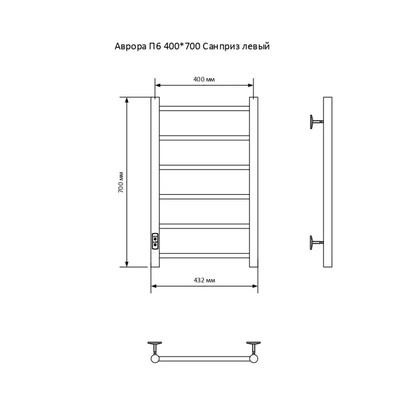 Полотенцесушитель электрический Санприз Аврора П6 400*700 11030 Хром глянцевый диммер слева