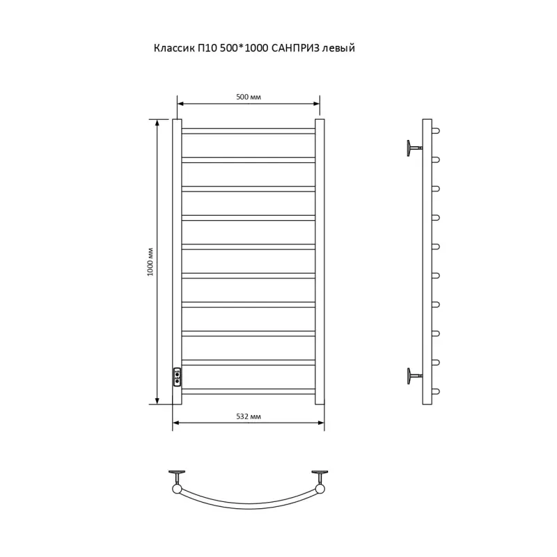 Полотенцесушитель электрический Санприз Классик П10 500*1000 11042 Хром глянцевый диммер слева