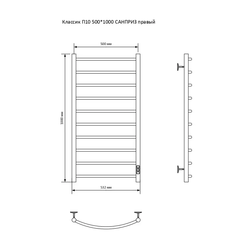 Полотенцесушитель электрический Санприз Классик П10 500*1000 11043 Хром глянцевый диммер справа