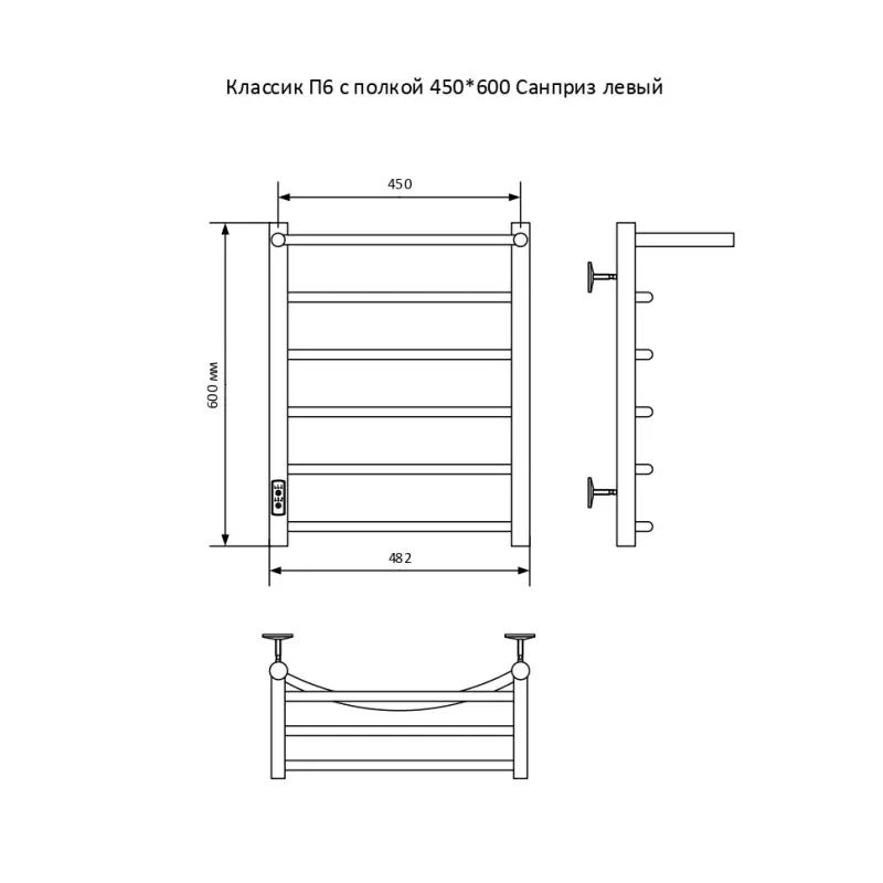 Полотенцесушитель электрический Санприз Классик П6 450*600 11036 Хром глянцевый диммер слева