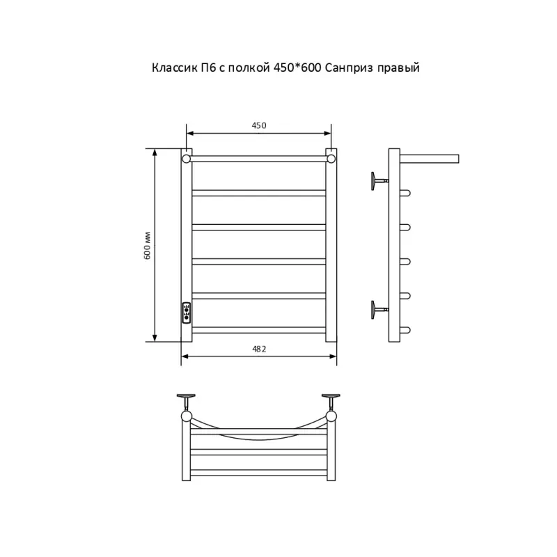 Полотенцесушитель электрический Санприз Классик П6 450*600 11037 Хром глянцевый диммер справа