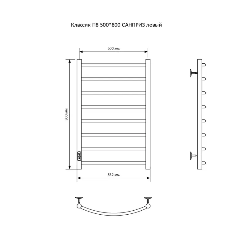 Полотенцесушитель электрический Санприз Классик П8 500*800 11038 Хром глянцевый диммер слева