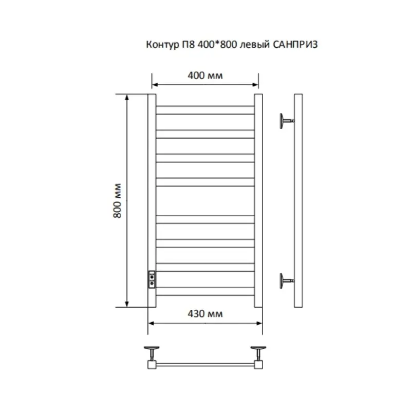 Полотенцесушитель электрический Санприз Контур П8 400*800 11063 Хром глянцевый диммер слева