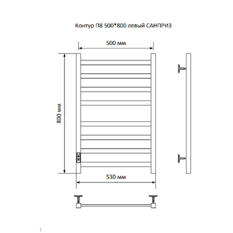 Полотенцесушитель электрический Санприз Контур П8 500*800 11065 Хром глянцевый диммер слева