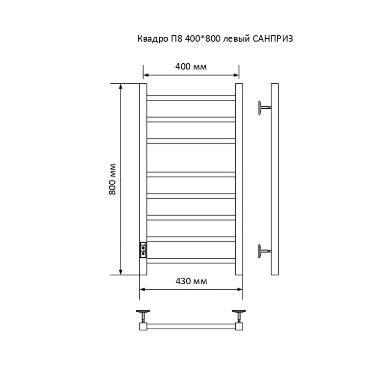 Полотенцесушитель электрический Санприз Квадро П8 400*800 11048 Хром глянцевый диммер слева