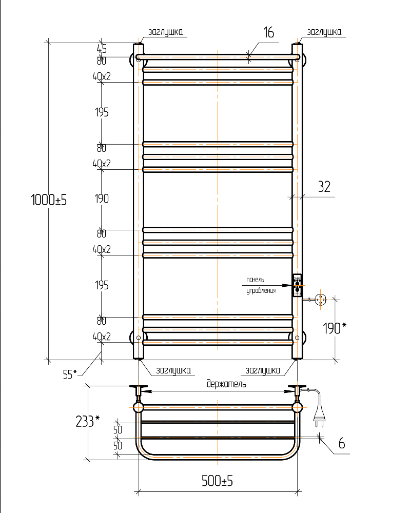 Полотенцесушитель электрический Тера Богема с высотой 100 см., используется для обогрева и сушки помещения. Нижнее подключение. Изготовлен из нержавеющей стали.