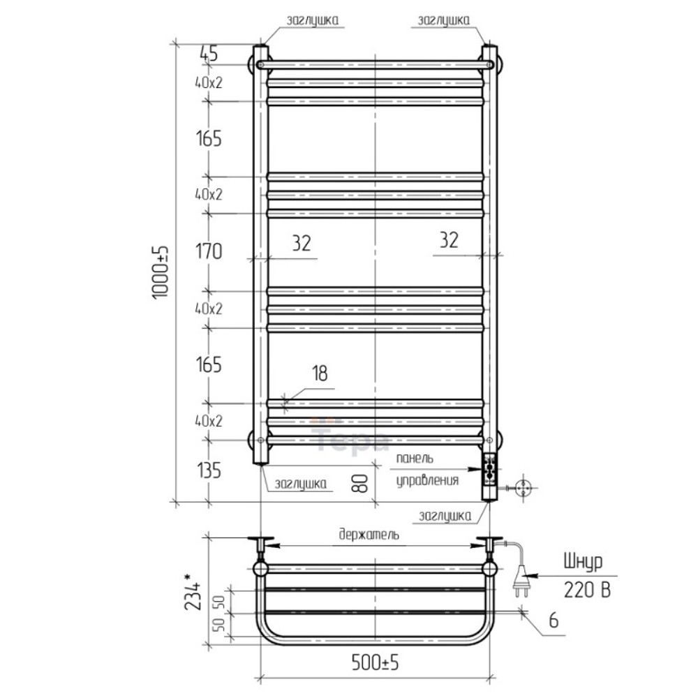 Полотенцесушитель электрический Тера Богема с высотой 100 см., используется для обогрева и сушки помещения. Нижнее подключение. Изготовлен из нержавеющей стали.