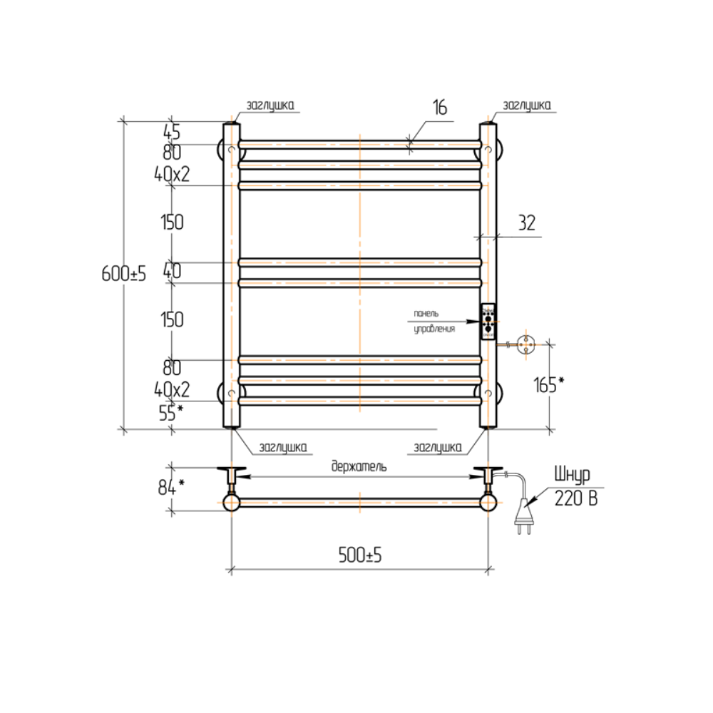Полотенцесушитель электрический Тера Богема с высотой 60 см., используется для обогрева и сушки помещения. Нижнее подключение. Изготовлен из нержавеющей стали.