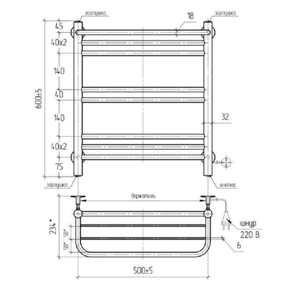Полотенцесушитель электрический Тера Богема 50х60 кнопка включения, телескоп.держатели Хром глянцевый ПСК-14-05