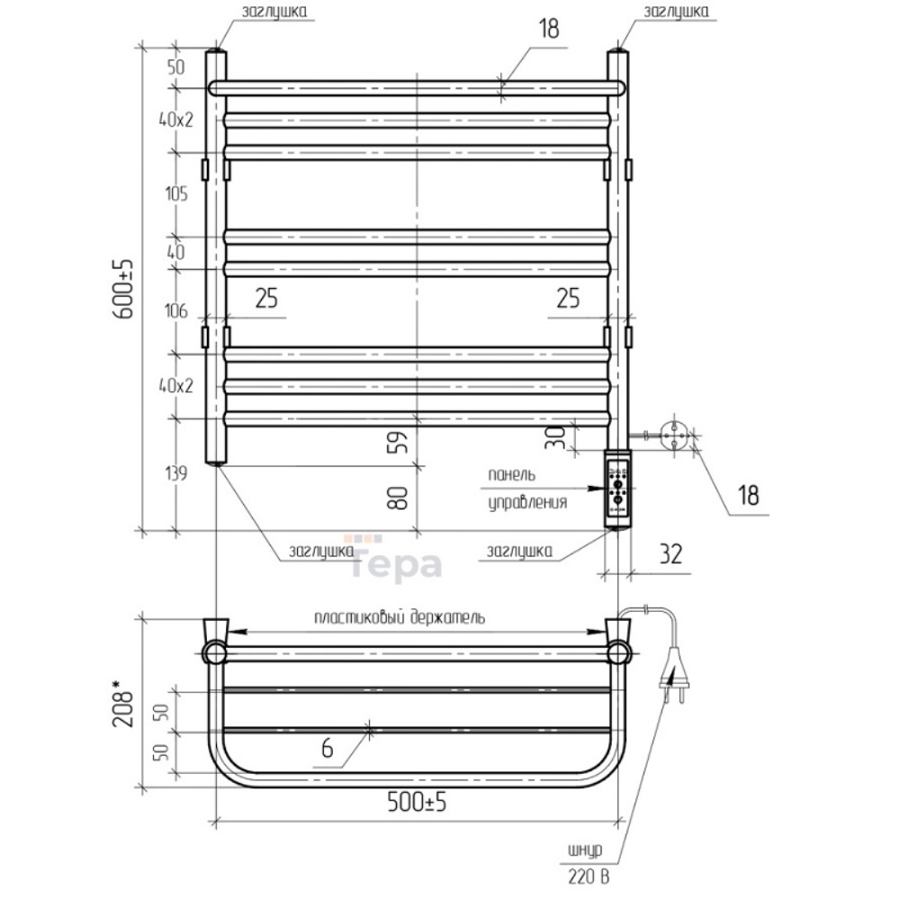 Полотенцесушитель электрический Тера Богема с высотой 60 см., используется для обогрева и сушки помещения. Нижнее подключение. Изготовлен из нержавеющей стали.