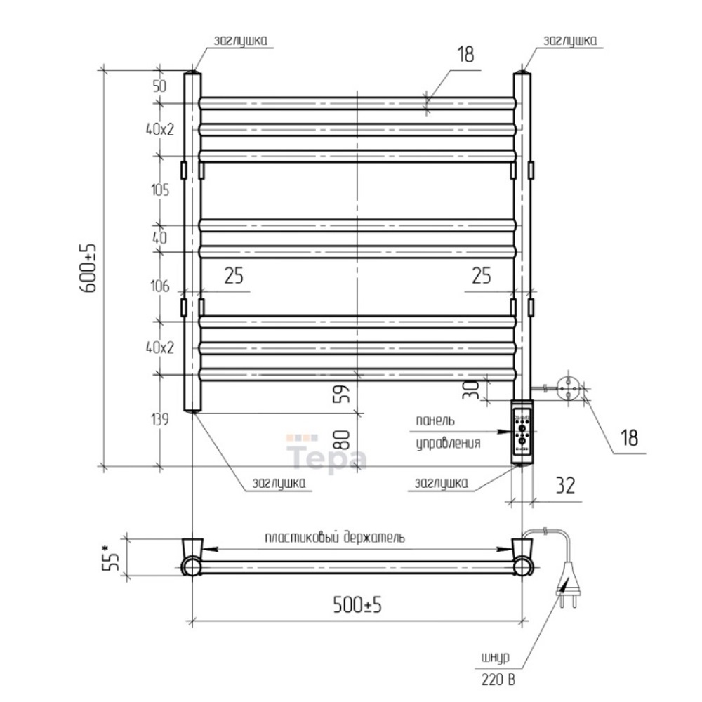 Полотенцесушитель электрический Тера Богема с высотой 60 см., используется для обогрева и сушки помещения. Нижнее подключение. Изготовлен из нержавеющей стали.