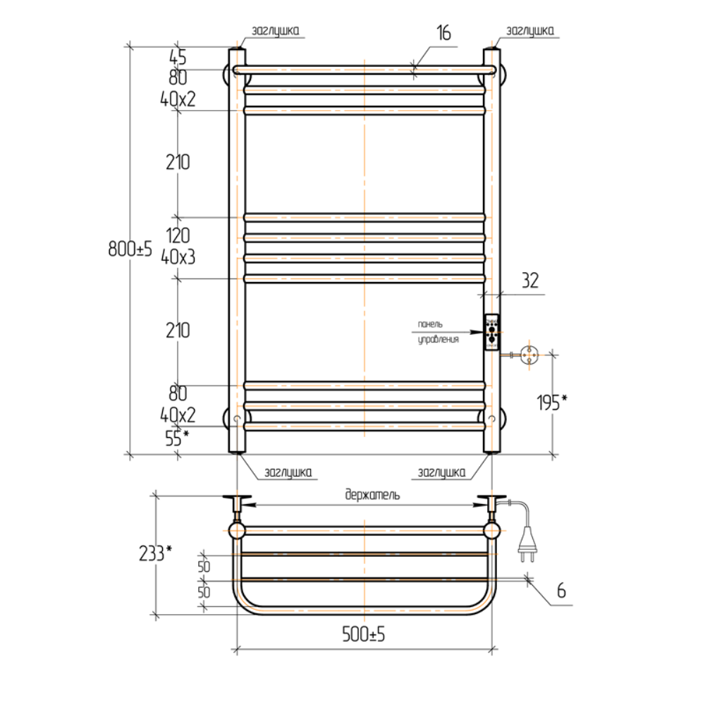 Полотенцесушитель электрический Тера Богема 50х80 диммер Черный матовый ПСК-14-06д.ч