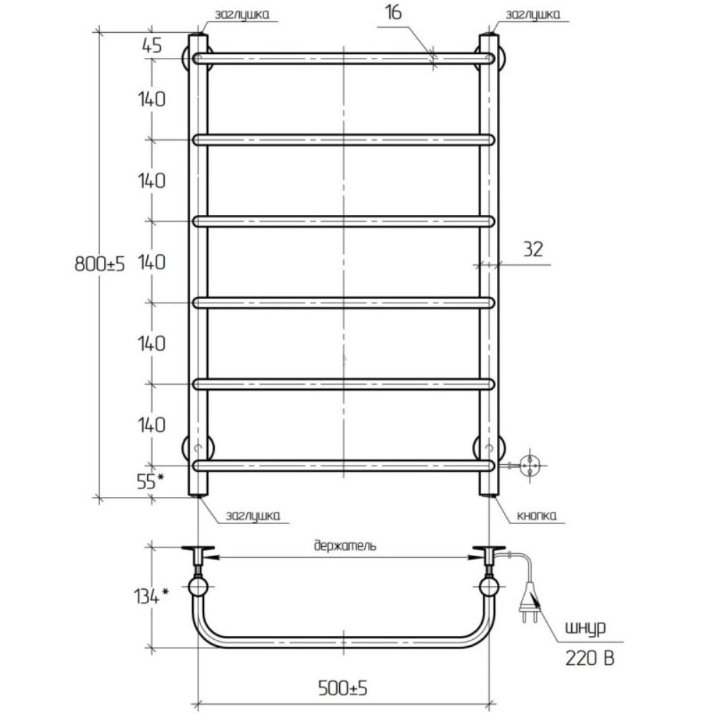 Полотенцесушитель электрический Тера Мост 50х80 кнопка включения, телескоп.держатели Черный матовый ПСК-12-03ч
