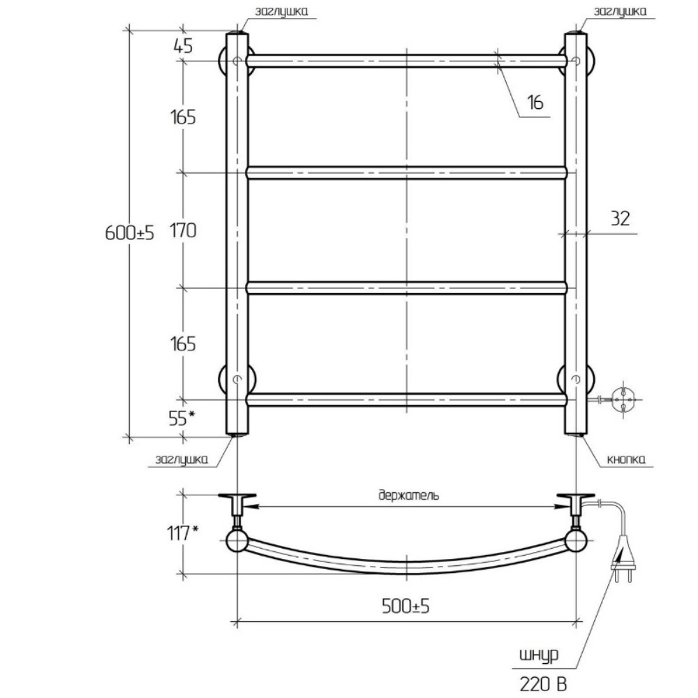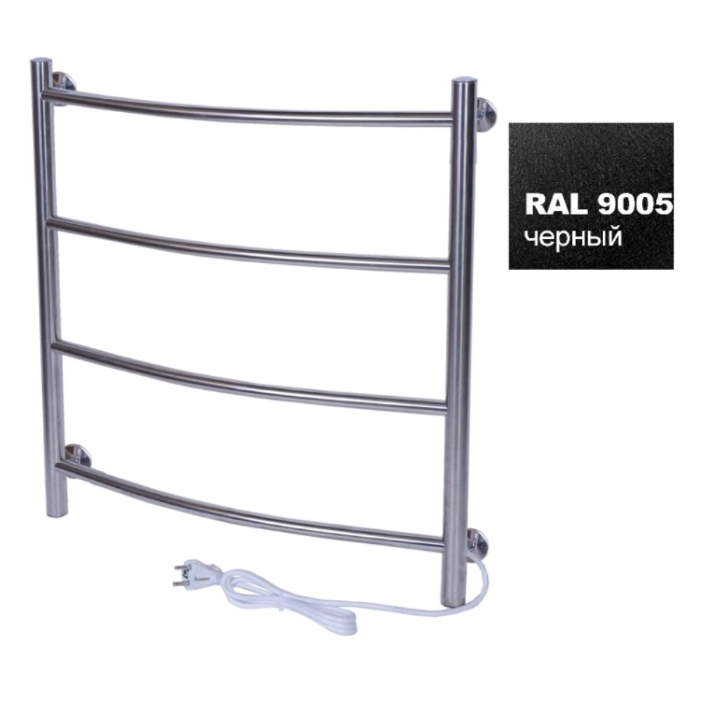 Полотенцесушитель электрический Тера Ребро 50х60 кнопка включения, телескоп.держатели Черный матовый ПСК-10-02ч