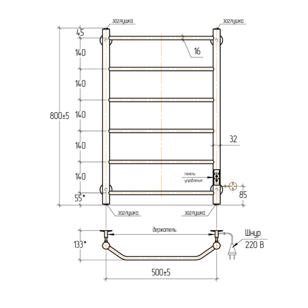 Полотенцесушитель электрический Тера Виктория с высотой 80 см., используется для обогрева и сушки помещения. Нижнее подключение. Изготовлен из нержавеющей стали.