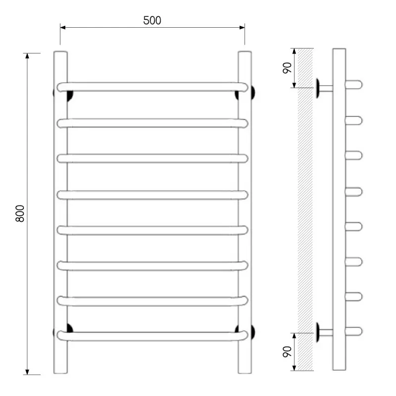 Полотенцесушитель водяной Laris Стандарт П8 80х50 Черный матовый 73208015ЧМ