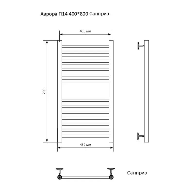 Полотенцесушитель водяной Санприз Аврора П14 400*800 Хром глянцевый 11020