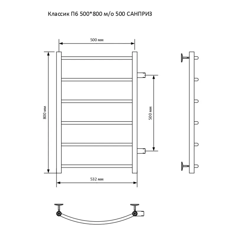 Полотенцесушитель водяной Санприз Классик П6 500*800 Хром глянцевый 11016