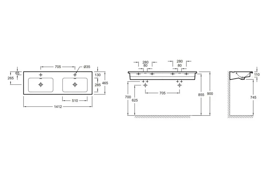 Раковина двойная Jacob Delafon Vox 140х46