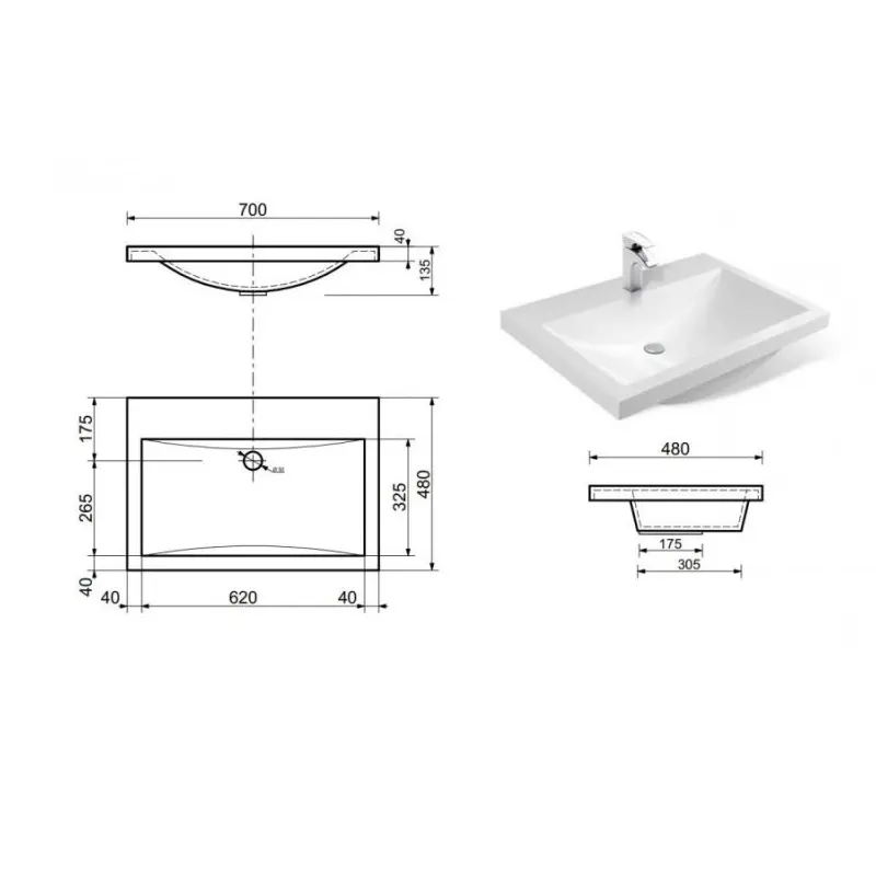| Отверстия под смеситель | На 1 отверстие |