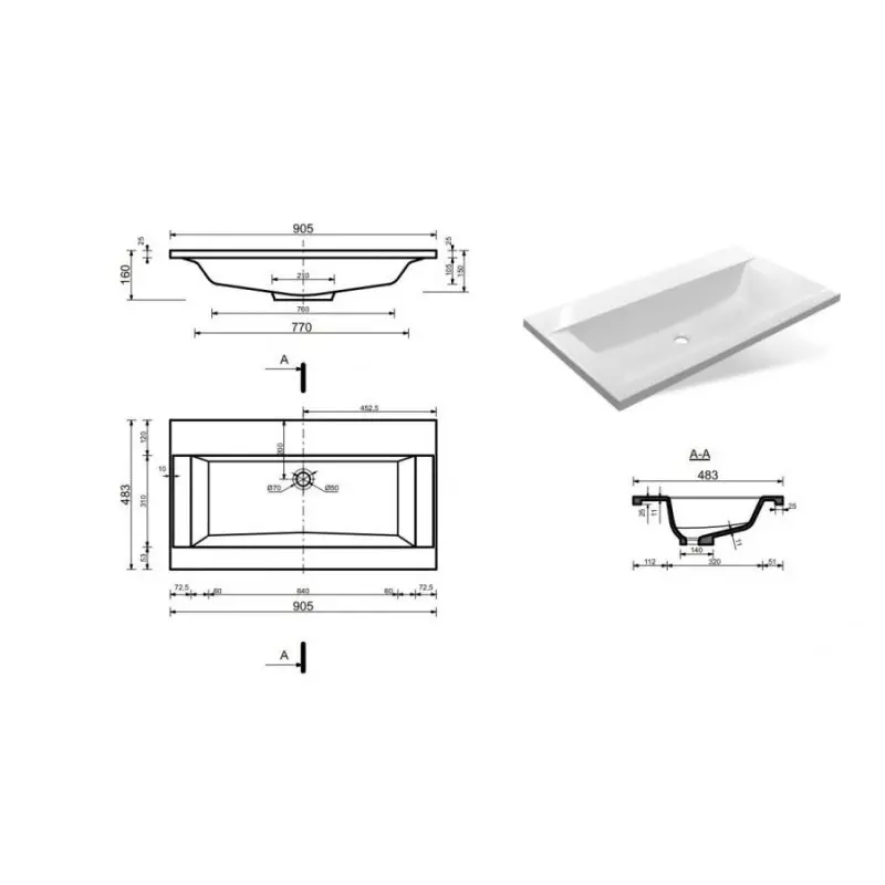 | Расположение смесителя | По центру |