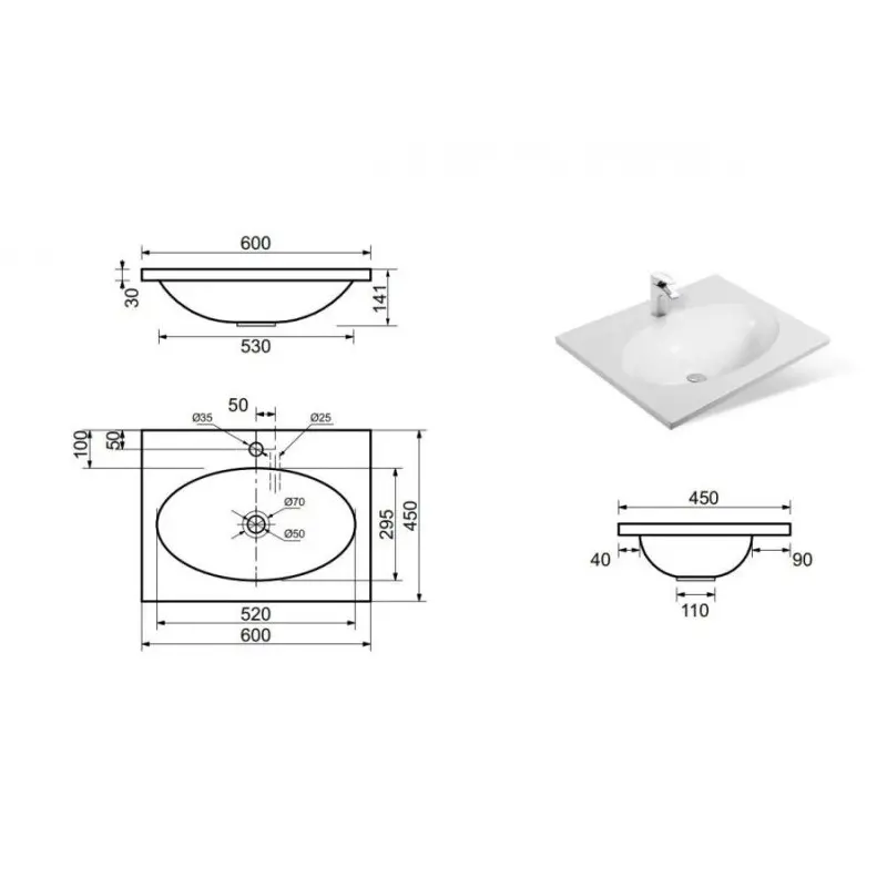 | Отверстия под смеситель | На 1 отверстие |