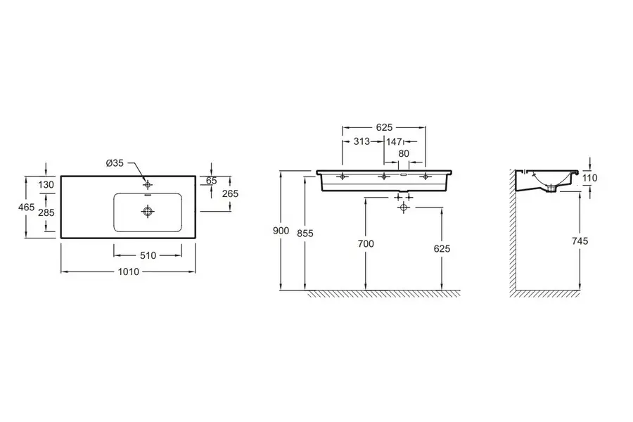 Раковина мебельная Jacob Delafon Vox 100х46 полка слева