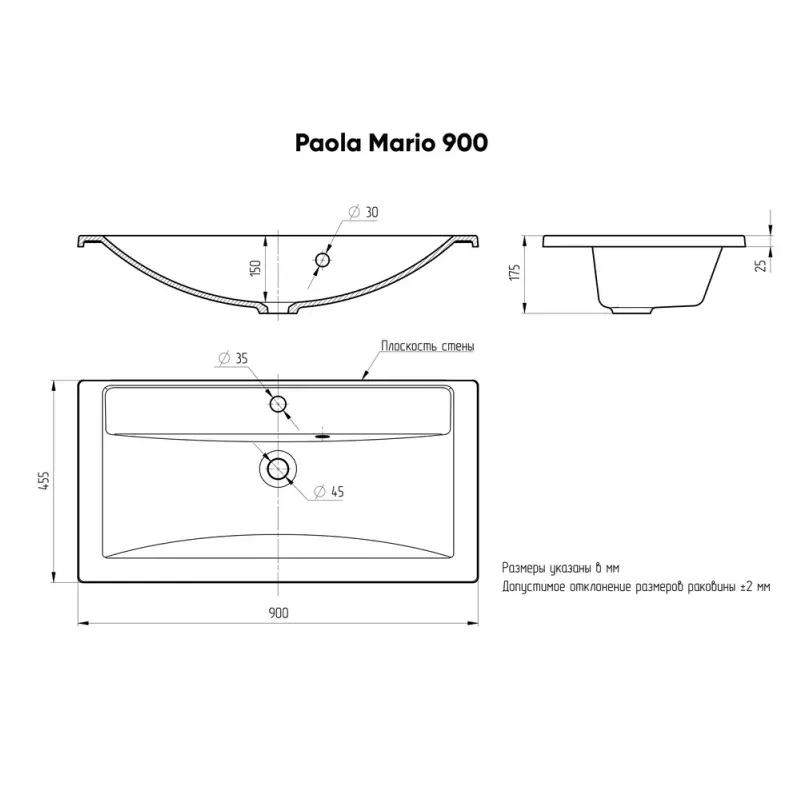 Раковина мебельная Paola Mario имеет размер 90х45,5 см, обладает прямоугольной формой, оборудована одним отверстием для смесителя. Модель гармонично впишется в интерьер любой ванной комнаты.