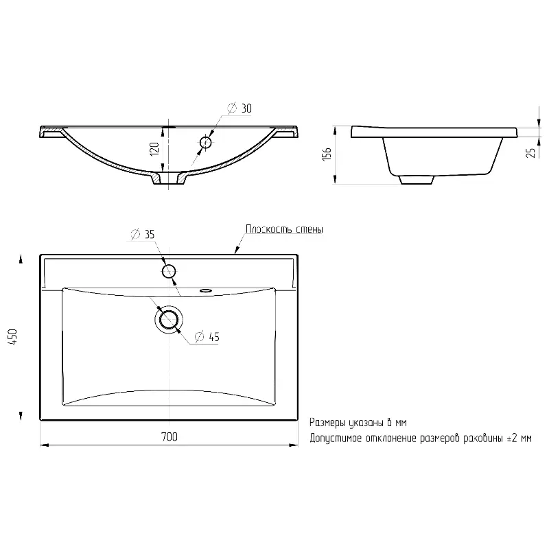 | Форма | Прямоугольная |