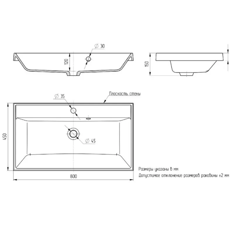 | Форма | Прямоугольная |