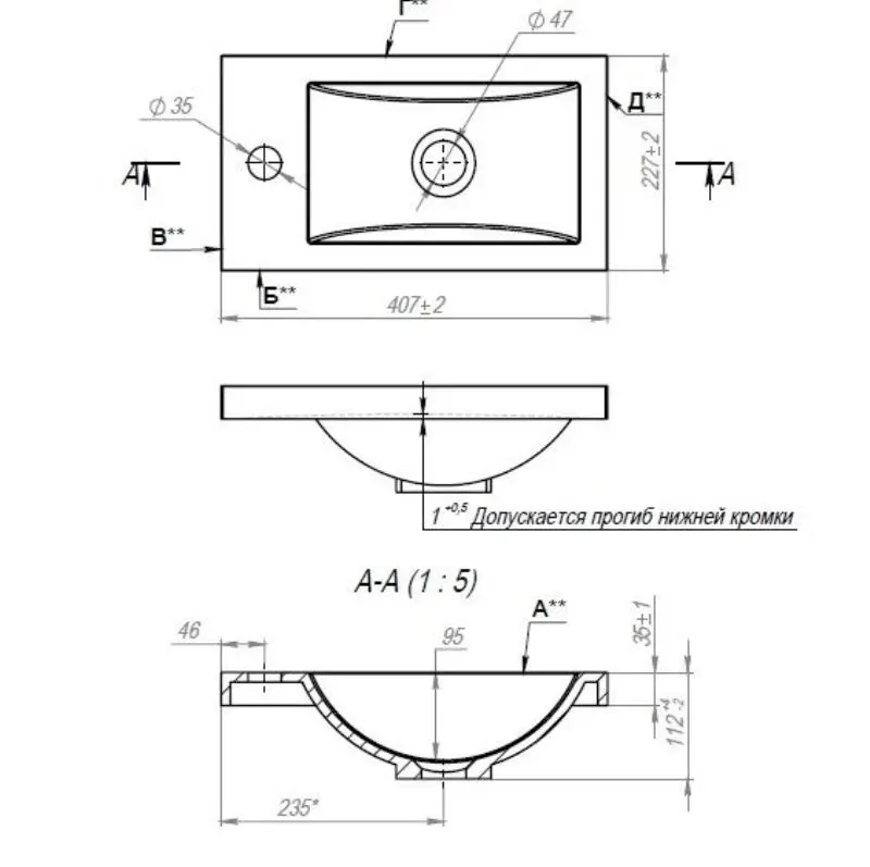 | Отверстия под смеситель | На 1 отверстие |
