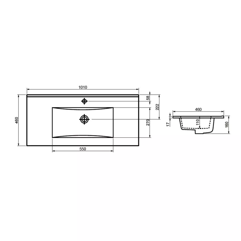 Раковина на мебель Comforty имеет размер 46х101 см, обладает прямоугольной формой. На 1 отверстие для смесителя. Модель гармонично впишется в интерьер любой ванной комнаты.