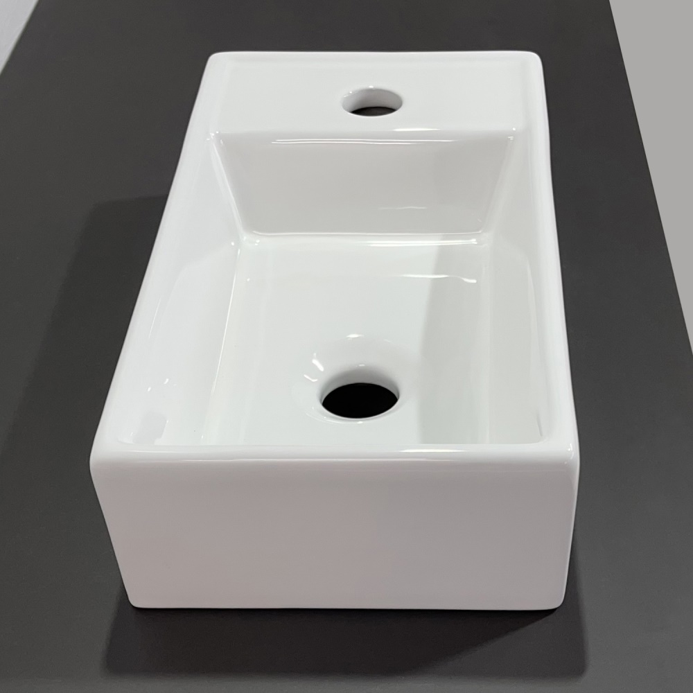 Раковина на мебель Comforty имеет размер 41х22 см, обладает прямоугольной формой. На 1 отверстие для смесителя. Модель гармонично впишется в интерьер любой ванной комнаты.