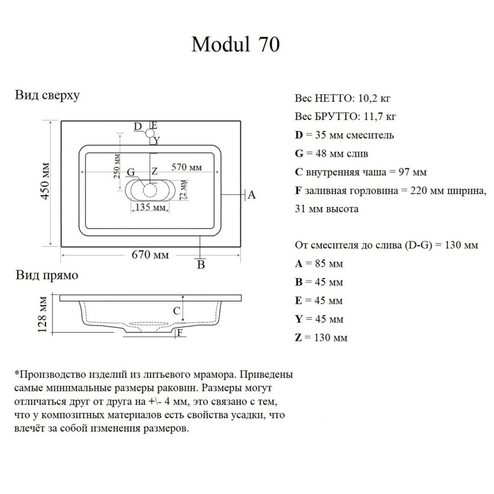 Раковина на мебель Madera Модуль 67 Белый глянцевый 4627173210782