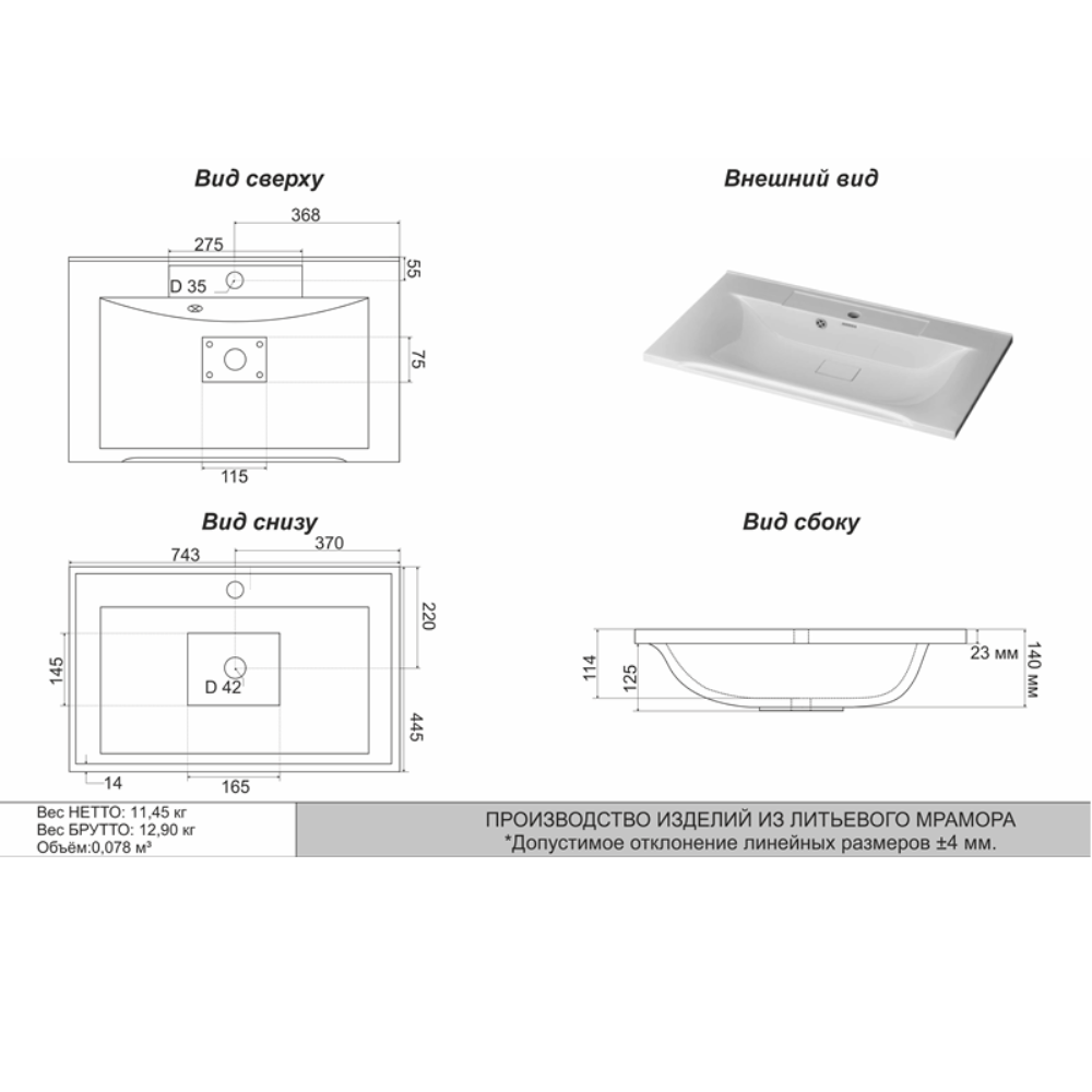 | Материал | Искусственный мрамор |