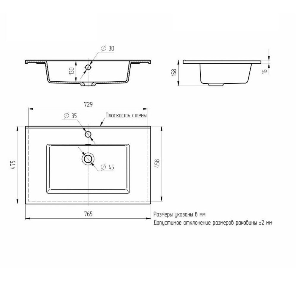 Раковина на мебель Uperwood Parma Quartz 76,5 Уголь 291003004