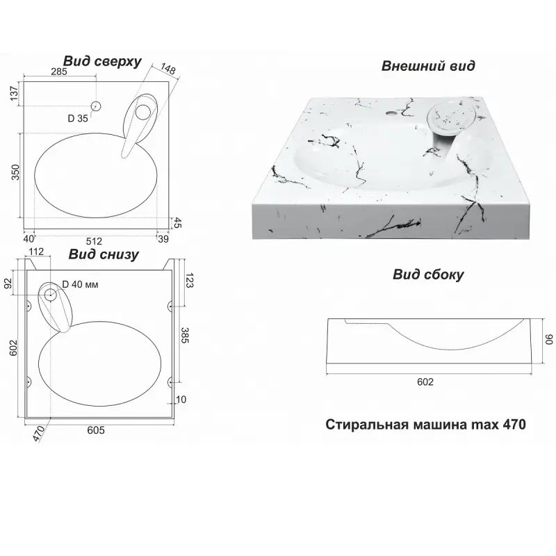 Раковина на стиральную машину Azario Carmen 60,5х60,2 Белый мрамор CS00078503