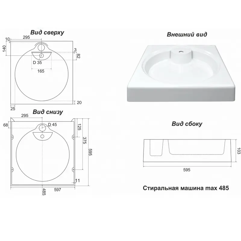 | Отверстия под смеситель | На 1 отверстие |