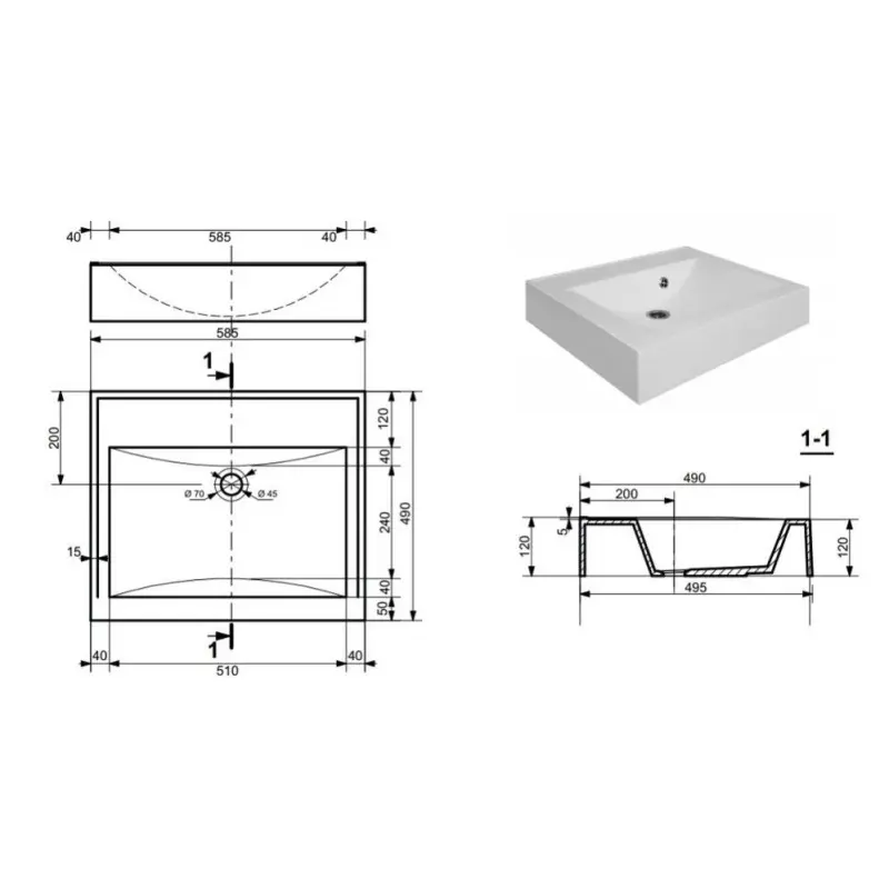 | Отверстия под смеситель | На 1 отверстие |