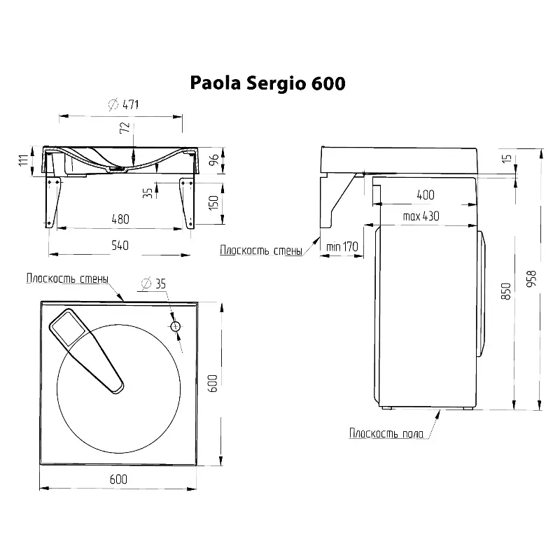 Раковина на стиральную машину Paola Sergio 60х60 Белый