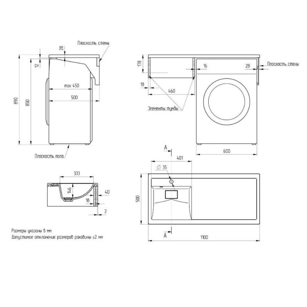 Раковина над стиральной машиной Uperwood Magenta 110 левая Белый глянцевый 2490000012