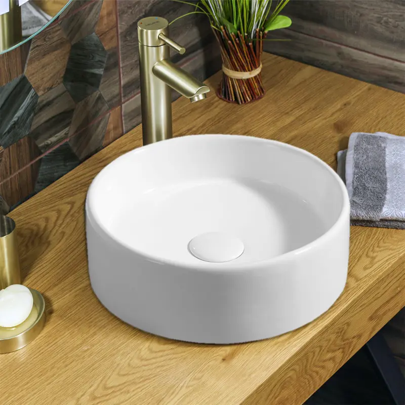 Раковина накладная Azario AZ имеет размер 45х45 см, обладает круглой формой, без отверстия для смесителя. Модель гармонично впишется в интерьер любой ванной комнаты. Материал изготовления фаянс.