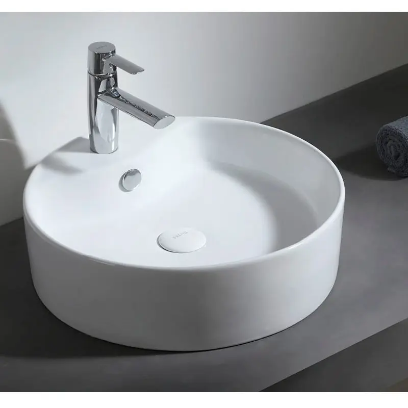 Раковина накладная Azario AZ имеет размер 46,5х46,5 см, обладает круглой формой, оборудована одним отверстием для смесителя. Модель гармонично впишется в интерьер любой ванной комнаты. Материал изготовления фаянс.