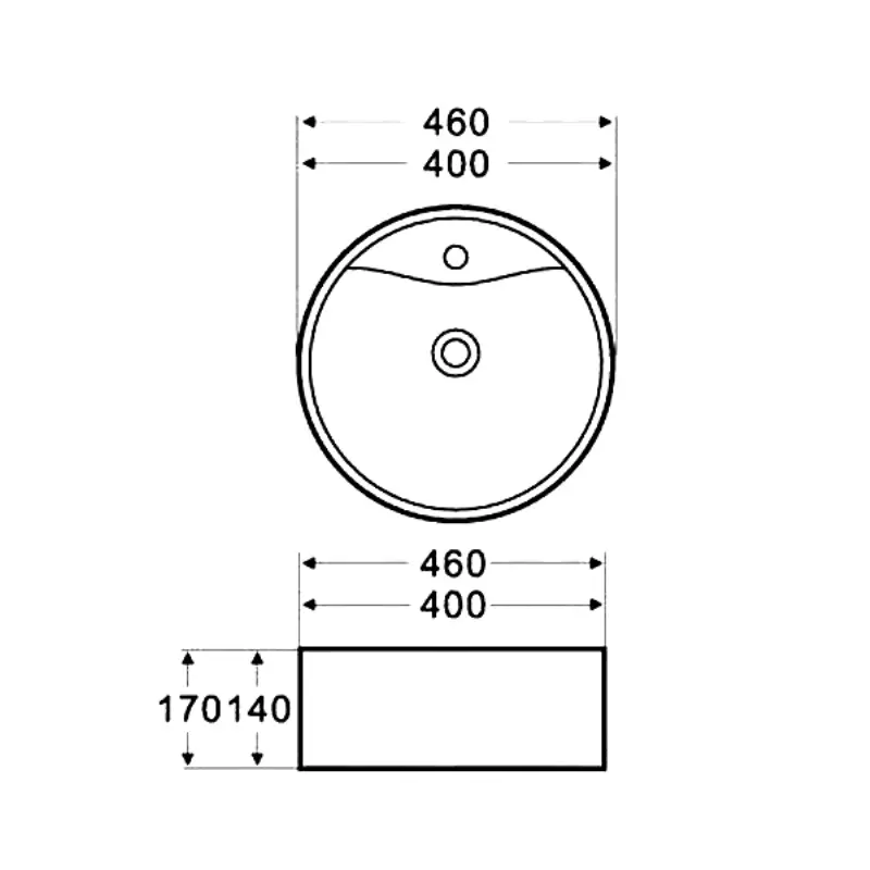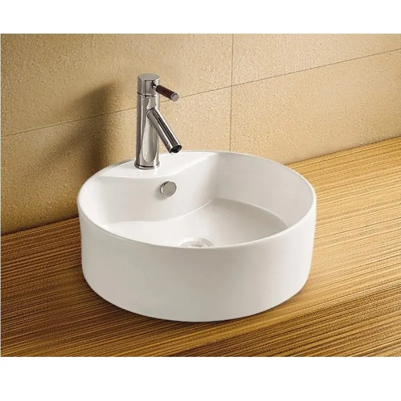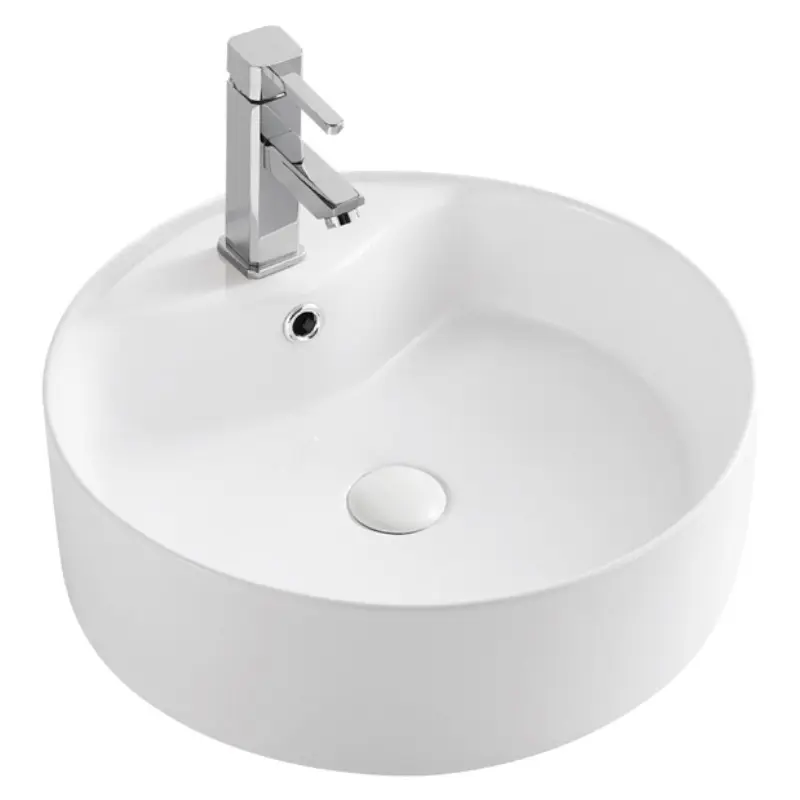 Раковина накладная Azario AZ имеет размер 46х46 см, обладает круглой формой, оборудована одним отверстием для смесителя. Модель гармонично впишется в интерьер любой ванной комнаты. Материал изготовления фаянс.