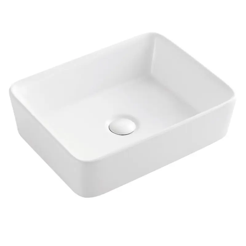 Раковина накладная Azario AZ имеет размер 48х37 см, обладает прямоугольной формой, без отверстия для смесителя. Модель гармонично впишется в интерьер любой ванной комнаты. Материал изготовления фаянс.