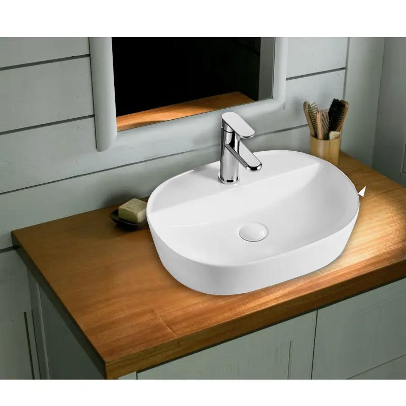 Раковина накладная Azario AZ имеет размер 50,5х38,5 см, обладает овальной формой, оборудована одним отверстием для смесителя. Модель гармонично впишется в интерьер любой ванной комнаты. Материал изготовления фаянс.