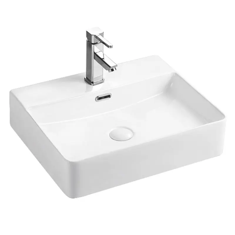 Раковина накладная Azario AZ имеет размер 51,5х42,5 см, обладает прямоугольной формой, без отверстия для смесителя. Модель гармонично впишется в интерьер любой ванной комнаты. Материал изготовления фаянс.