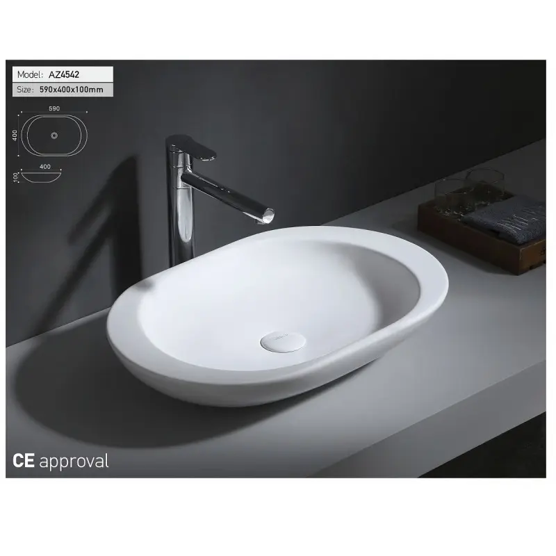 Раковина накладная Azario AZ имеет размер 59х40 см, обладает овальной формой, без отверстия для смесителя. Модель гармонично впишется в интерьер любой ванной комнаты. Материал изготовления фаянс.