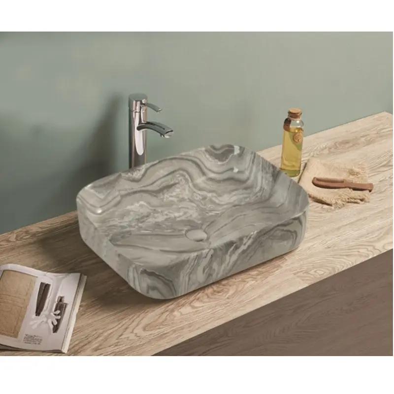 Раковина накладная Azario AZ 60,5х42,5 Серый мрамор AZ-78625